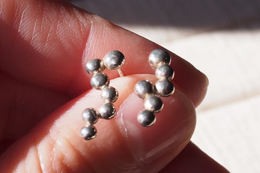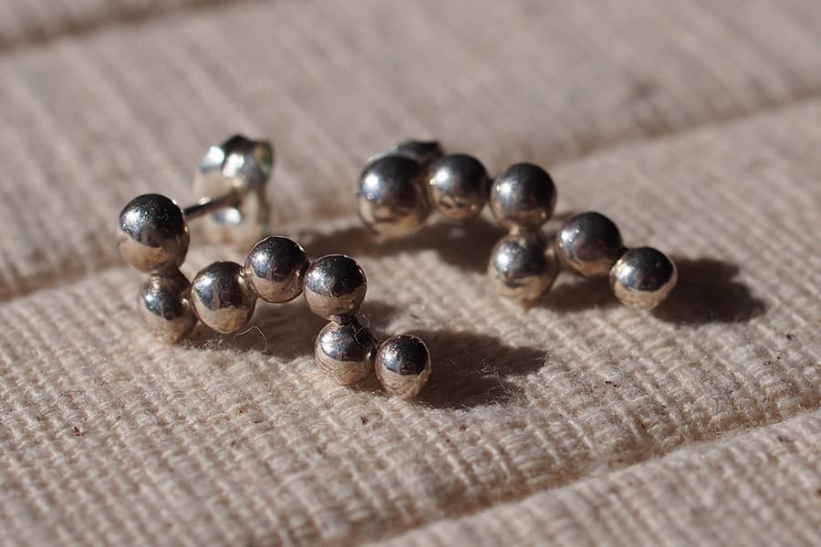 つながった粒々がかわいい。繊細なデザインのピアスです。